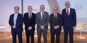 En la imagen superior, de izquierda a derecha, Miguel Hernández, director general del Institut Cerdà; Daniel Tugues, director País de Veolia en España; Miquel Sàmper, conseller de Empresa; Carlos Cabrera, presidente del Institut Cerdà; y Narcís Berberana, vocal del patronato del Institut Cerdà.