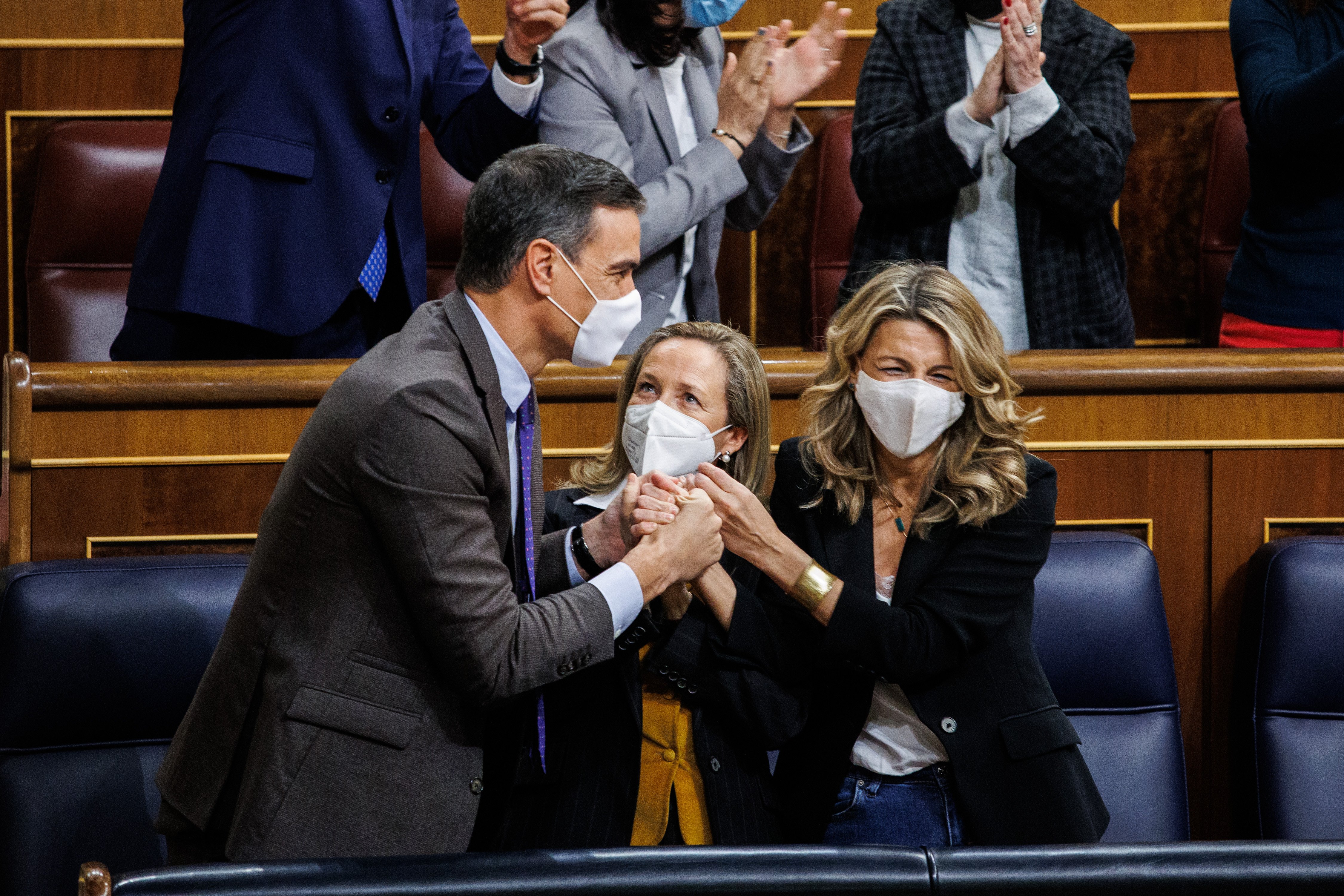 Las dos vicepresidentas, la primera, Nadia Calviño, y la segunda, Yolanda Díaz, han vuelto a tener diferencias respecto al salario mínimo interprofesional (SMI). Ayer arrancaba la negociación de la subida para el año próximo con una reunión entre el Ministerio de Trabajo y los agentes sociales en la que el Gobierno de España se limitó a escuchar las proposiciones de los sindicatos en persona y de la CEOE a través de un documento. Pero el secretario de Estado de Empleo, Joaquín Pérez Rey, no llevó su propia oferta porque los dos ministerios, uno del PSOE y el otro de Unidas Podemos, no se han puesto de acuerdo en una cifra. De hecho, Calviño ya ha dejado una pista de en que banda se mueve, pues un informe de su Ministerio, que se utilizó dentro de la Comisión Asesora para el Análisis del SMI, habla de una incremento del 2,92%, o 29,2 euros, y 3,05%, 30,5 euros. Lejos de lo que se ha presentado en la mesa ayer por los agentes sociales y de lo que considera Trabajo.