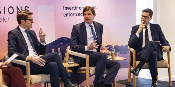 A continuación, Roberto Hernanz, responsable de mercados de banca privada de BBVA en España, Daniel Gómez, director de banca privada de BBVA en Catalunya, y Lorenzo Coletti, Head of Iberia de Pictet AM, debatieron acerca de las mejores estrategias de inversión.