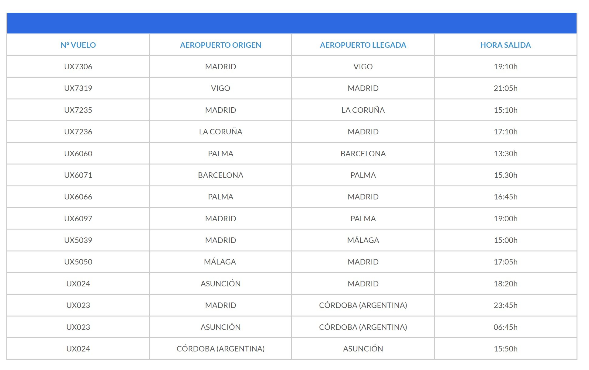 Las otras dos son cambiar de ruta a otro destino operado por Air Europa dentro de los 3 días anteriores o posteriores a la fecha original de su vuelo, o guardar el importe del billete para utilizarlo como crédito en una compra futura para cualquier aeropuerto operado por la aerolínea. Si no sabéis en cuál fecha viajar, ofrecen la posibilidad de guardar el importe del billete para utilizarlo como crédito en una compra futura, válido para cualquier destino operado por Air Europa. Hasta este viernes, hay el grueso mayor de vuelos afectados detallado por días.