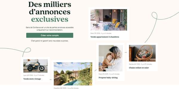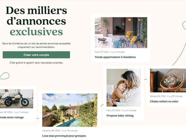 Gens de confiance es una plataforma francesa de anuncios clasificados para comprar, vender y, sobre todo, alquilar casas, vehículos, antigüedades... o encontrar servicios, especialmente de personal doméstico y canguros con referencias contrastadas. Se dirige a familias con alto poder adquisitivo y, para poder entrar, tanto para contratar como para ofrecer bienes o servicios, es necesario ser socio: no se trata de un trámite automático porque requiere el aval previo de dos de los actuales socios. Y si el nuevo socio incumple las condiciones o las normas de conducta, se le expulsará en compañía de aquellos que lo han apadrinado. Así evitan anuncios fraudulentos y garantizan la confianza en una plataforma que funciona como si fuera una red social.