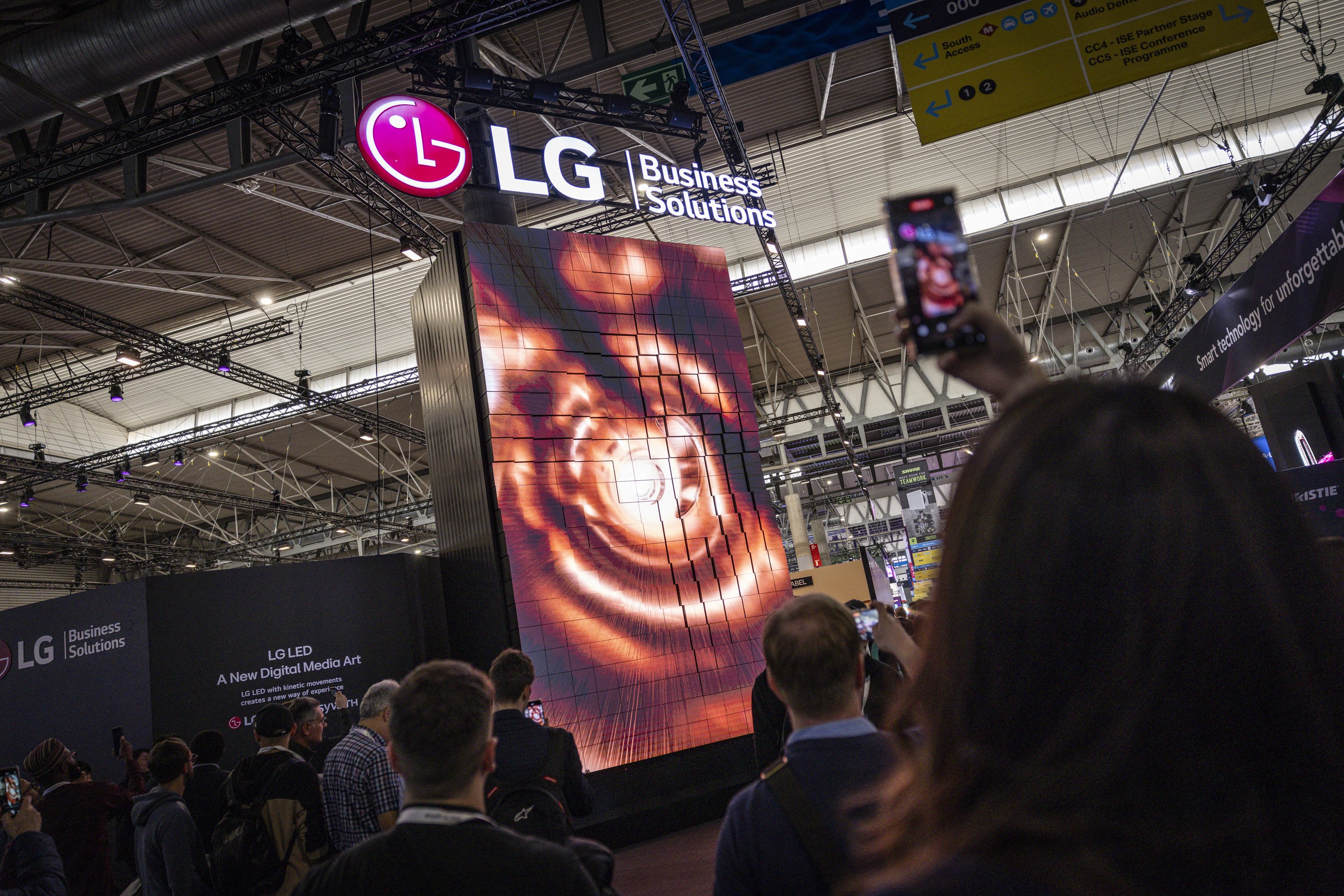 El gigante surcoreano LG ha presentado un gran abanico de pantallas, siendo la estrella invitada una plataforma de más de 10 metros de altura y que muestra arte digital que se mueve de manera sincronizada con la música ambiental. En el mismo estand también se ha podido ver la gamma LG Magnit, de pantallas micro LED, que permite crear proyectos a gran tamaño que pueden adaptarse a las demandas específicas de los clientes en cualquier entorno.